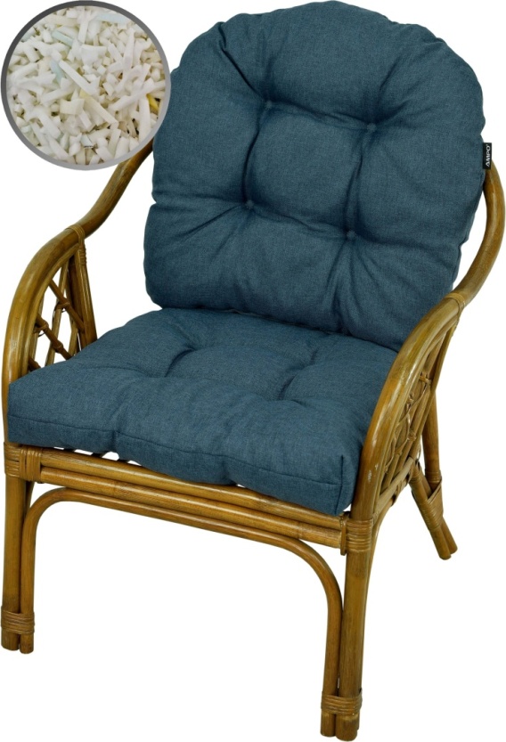 Poduszki na fotele rattanowe ATHENA powstały z myślą o popularnych meblach ogrodowych lub tarasowych wykonanych z rattanu lub wikliny. Poduchy na fotel składają się z dwóch elementów: siedziska oraz oparcia. Dzięki zastosowaniu wypełnienia z granulatu pianki PUR udało się uzyskać grubość wynoszącą ok. 10 cm. Sprawia to, że poduszki są bardzo komfortowe i wygodne dla użytkownika. Poduszki na fotele rattanowe zostały w całości uszyte z jednej tkaniny, bez używania tkanin zastępczych. Mocowane do foteli za pomocą troczków uszytych z tej samej tkaniny.
