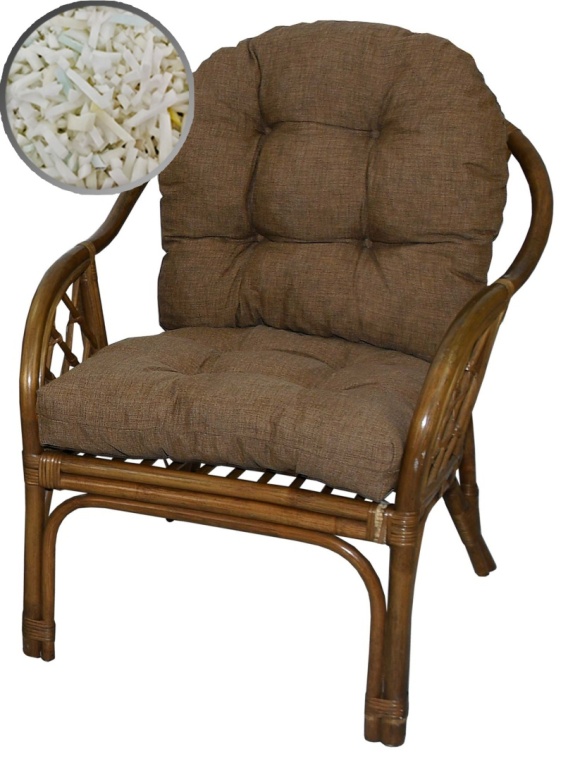 Poduszki na fotele rattanowe ATHENA powstały z myślą o popularnych meblach ogrodowych lub tarasowych wykonanych z rattanu lub wikliny. Poduchy na fotel składają się z dwóch elementów: siedziska oraz oparcia. Dzięki zastosowaniu wypełnienia z granulatu pianki PUR udało się uzyskać grubość wynoszącą ok. 10 cm. Sprawia to, że poduszki są bardzo komfortowe i wygodne dla użytkownika. Poduszki na fotele rattanowe zostały w całości uszyte z jednej tkaniny, bez używania tkanin zastępczych. Mocowane do foteli za pomocą troczków uszytych z tej samej tkaniny.