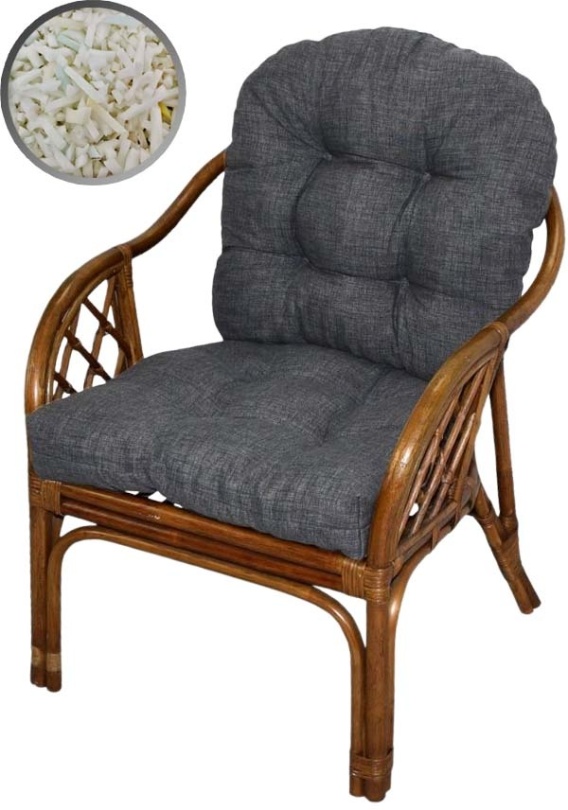 Poduszki na fotele rattanowe ATHENA powstały z myślą o popularnych meblach ogrodowych lub tarasowych wykonanych z rattanu lub wikliny. Poduchy na fotel składają się z dwóch elementów: siedziska oraz oparcia. Dzięki zastosowaniu wypełnienia z granulatu pianki PUR udało się uzyskać grubość wynoszącą ok. 10 cm. Sprawia to, że poduszki są bardzo komfortowe i wygodne dla użytkownika. Poduszki na fotele rattanowe zostały w całości uszyte z jednej tkaniny, bez używania tkanin zastępczych. Mocowane do foteli za pomocą troczków uszytych z tej samej tkaniny.