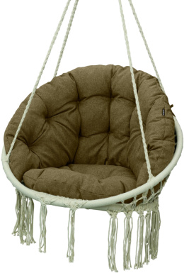 Poduszka na fotel wiszący JAWA III została zaprojektowana z myślą o bardzo popularnych fotelach wiszących i bocianich gniazdach. Niestety poduszki znajdujące się w zestawach z takimi meblami bardzo często są słabej jakości. Dlatego też stworzyliśmy produkt, który wyróżnia się bardzo wysoką jakością. Do wykonania poduszki zostały użyte najwyższej jakości tkaniny, dostępne w kilku wersjach kolorystycznych. Grubość całej poduszki to od 10 do 12 cm. Udało się ją uzyskać dzięki wypełnieniu z granulatu pianki PUR, który nadaje poduszce na fotel wiszący puszystości i miękkości. Poduszka składa się z dwóch elementów połączonych ze sobą, tak aby idealnie wypełnić wnętrze huśtawki typu bocianie gniazdo lub kokon wiszący.