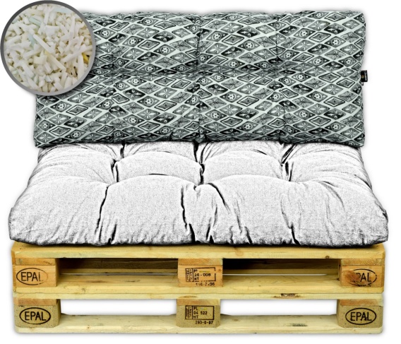 - Poduszka na meble z palet jest gruba i puszysta dzięki zastosowaniu wypełnienia z granulatu pianki PUR.