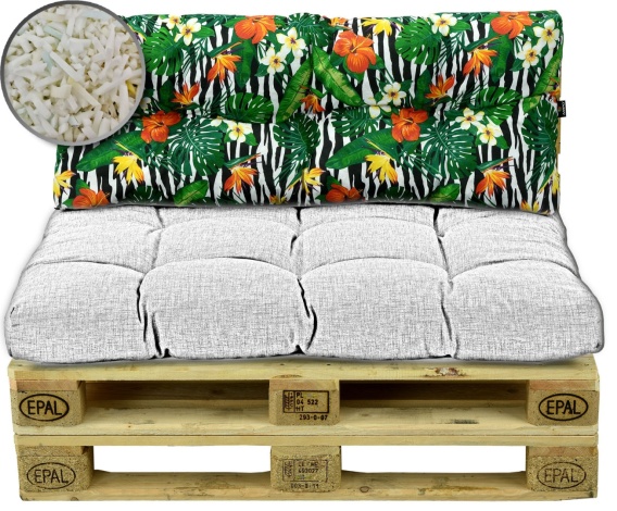 • Poduszka na meble z palet jest gruba i puszysta dzięki zastosowaniu wypełnienia z granulatu pianki PUR.