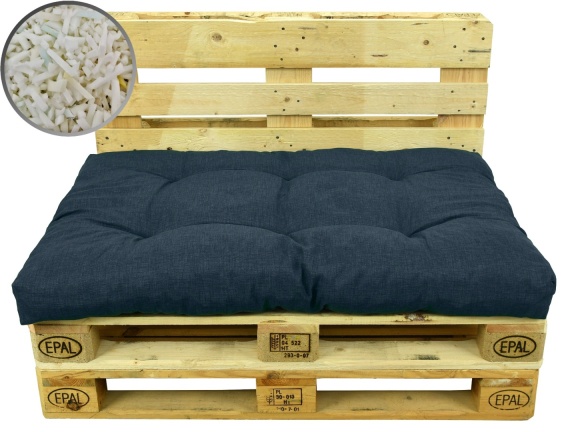 - Poduszka na meble z palet jest gruba i puszysta dzięki zastosowaniu wypełnienia z granulatu pianki PUR.
