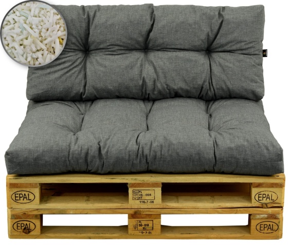 - Poduszki na meble z palet są grube i puszyste dzięki zastosowaniu wypełnienia z granulatu pianki PUR.